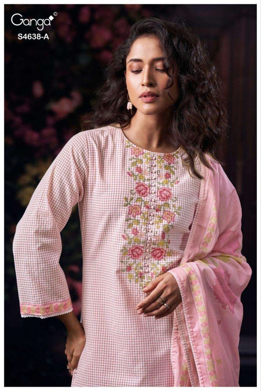 | Top: | premium cotton checks solid color with embroidery and printed lace, schiffli embroidery lace on daman & sleeves. |