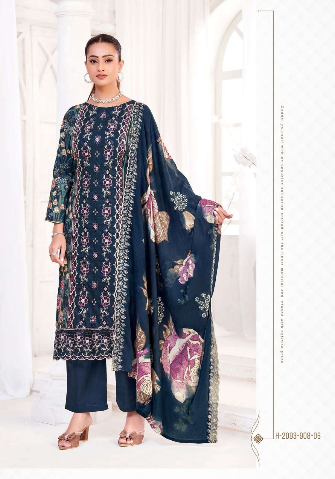 | Top: | pure cambric cotton designer print with fancy embroidery work |