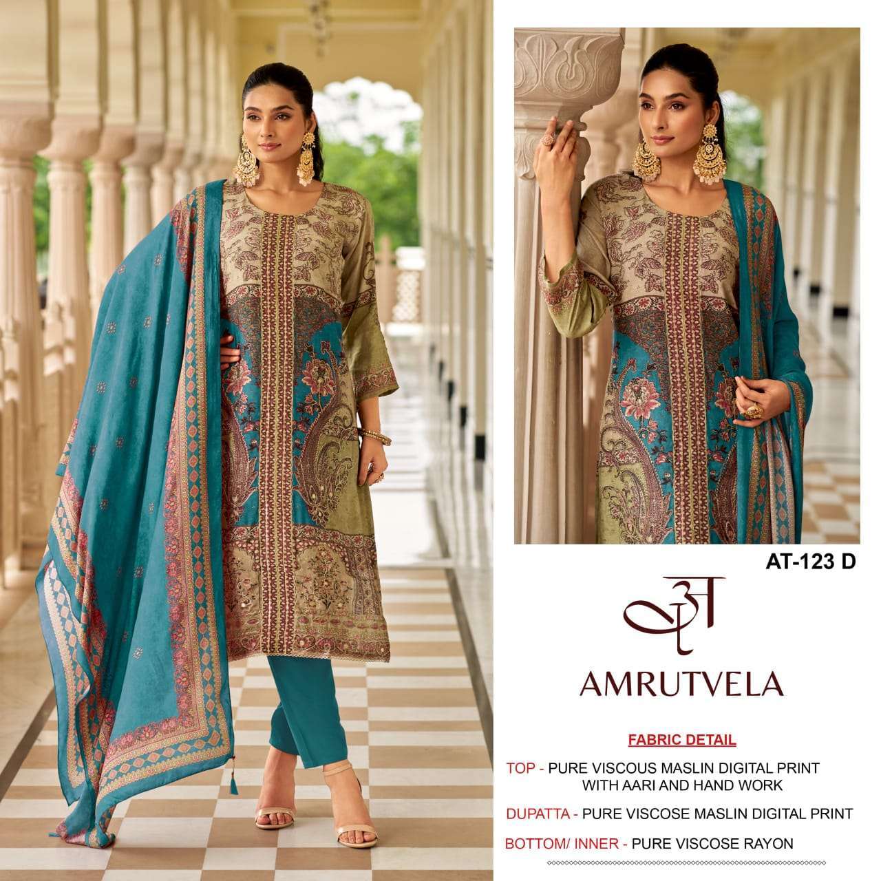 | Top: | pure viscose muslin digital print with aari and handwork |