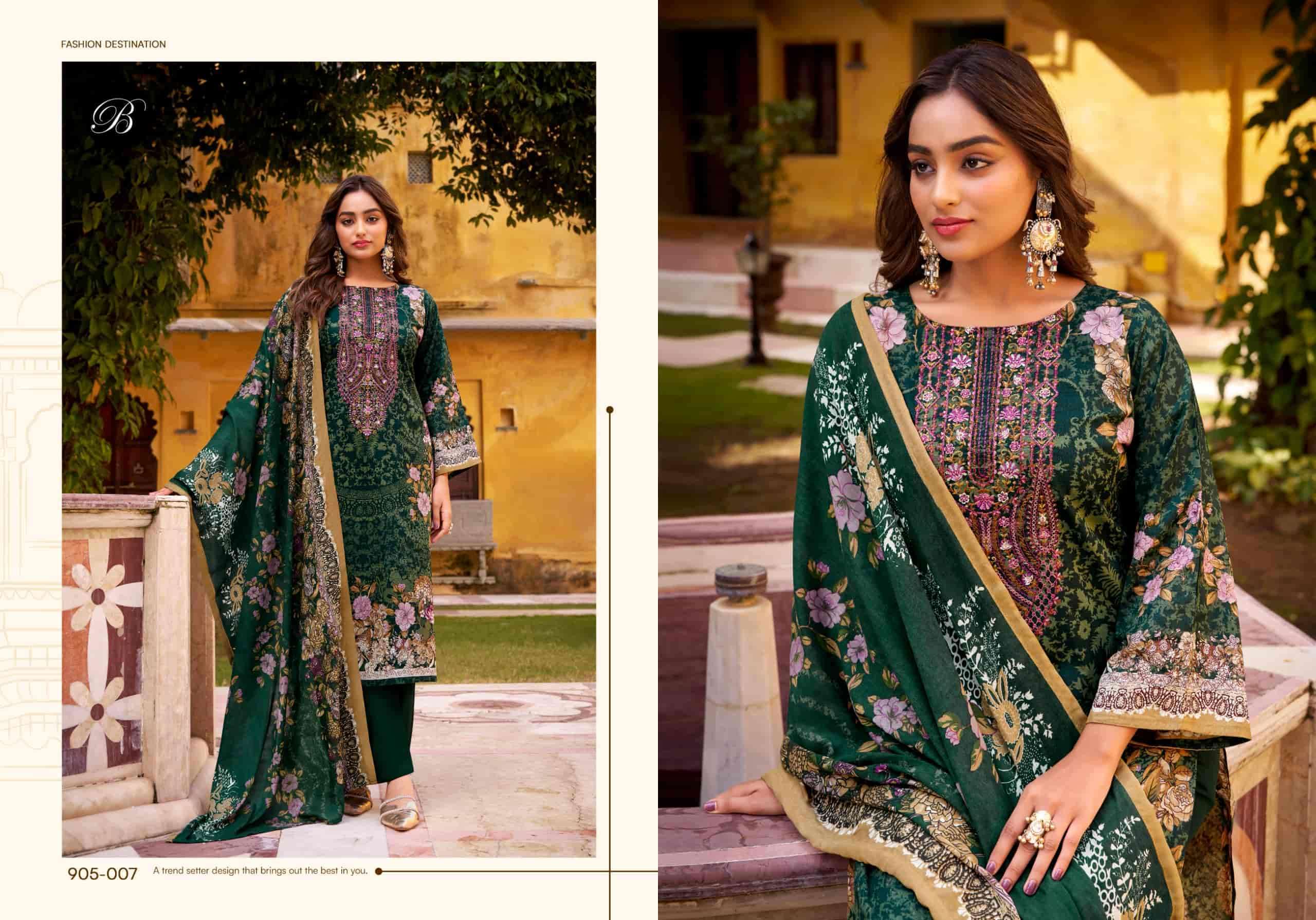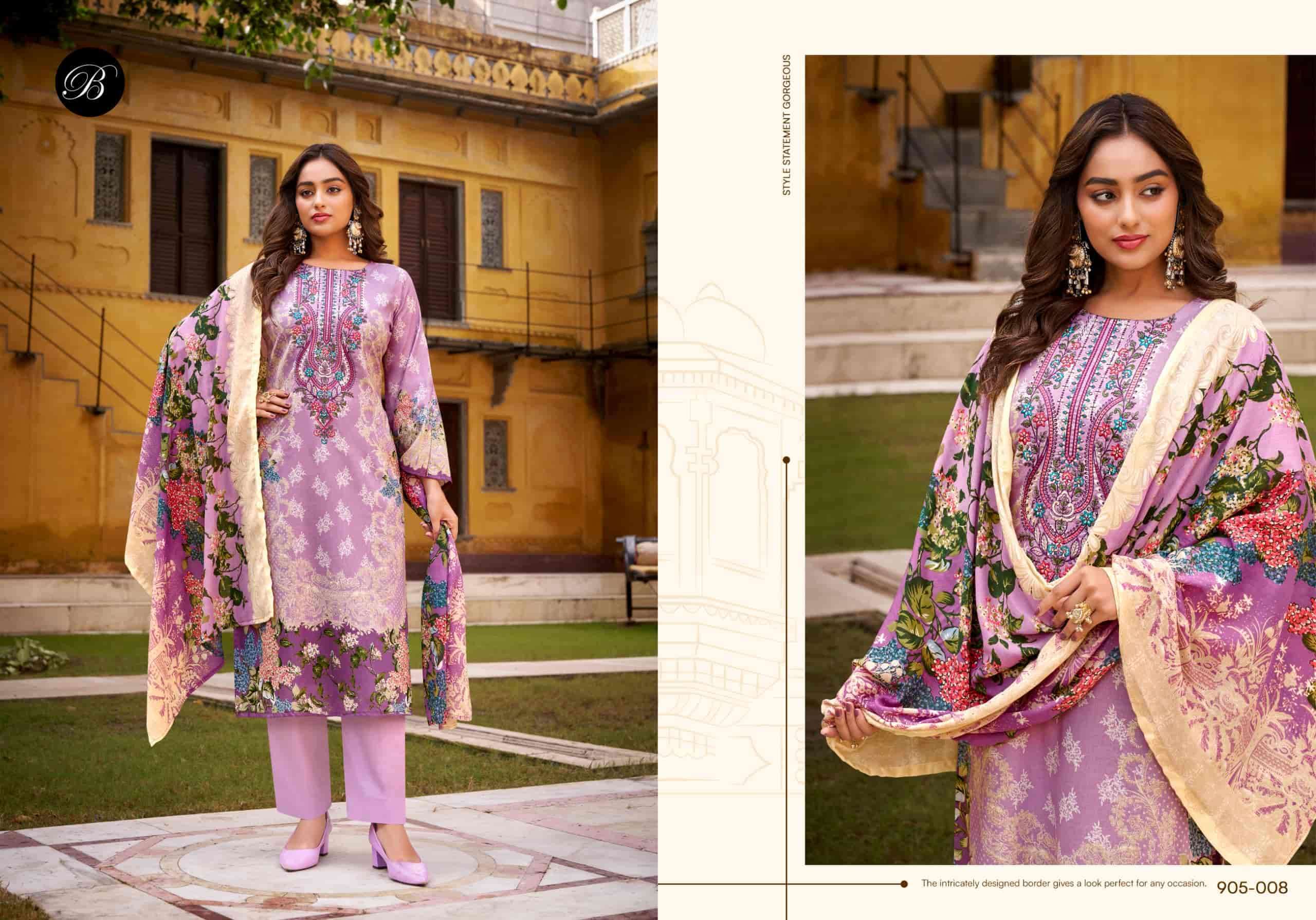 | Top: | 100% pure cotton digital prints with exclusive heavy self embroidery(2.50mtr apx) |