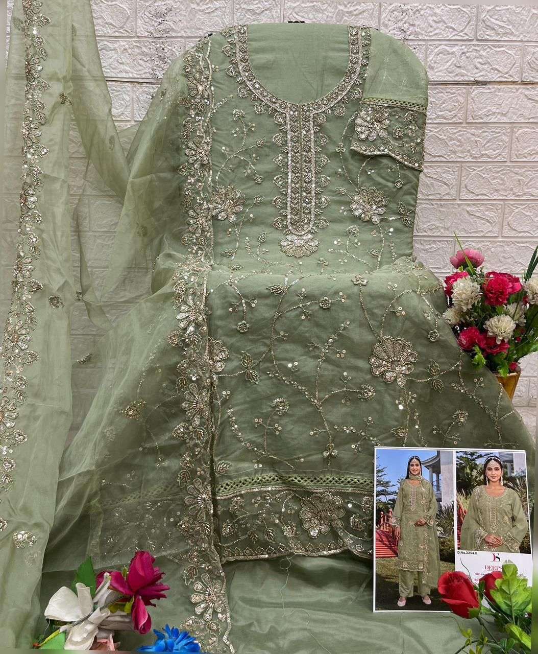 | Dupatta: | organza with embroidery & bits work |