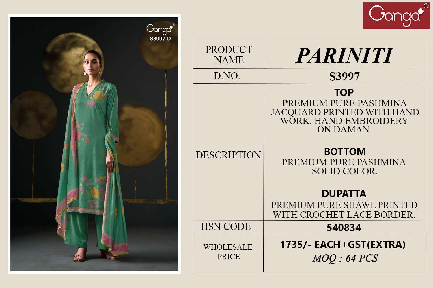 Top: | premium pure pashmina jacquard printed with handwork , hand embroidery on daman |
