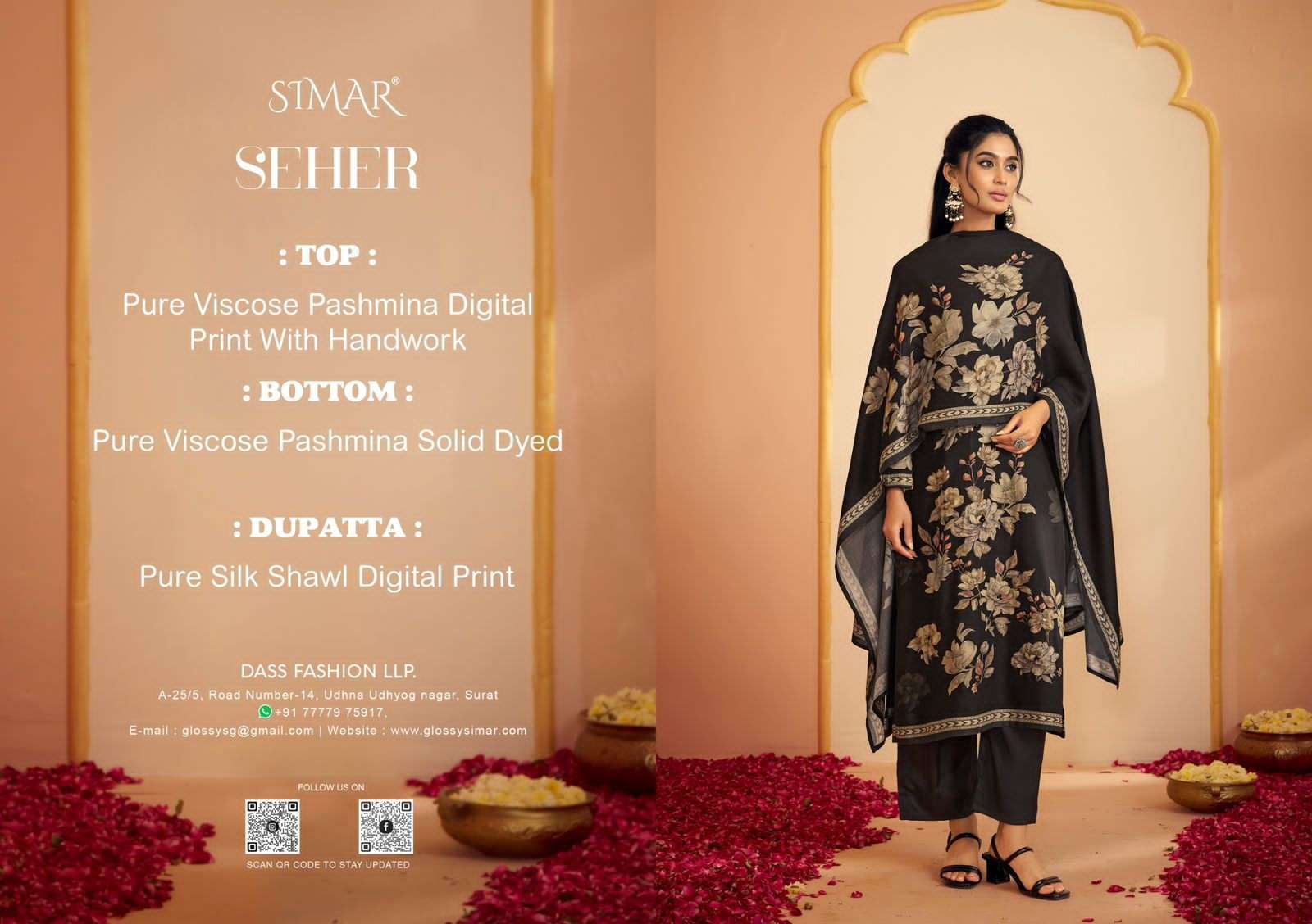 | Top: | pure viscose pashmina digital print with handwork |