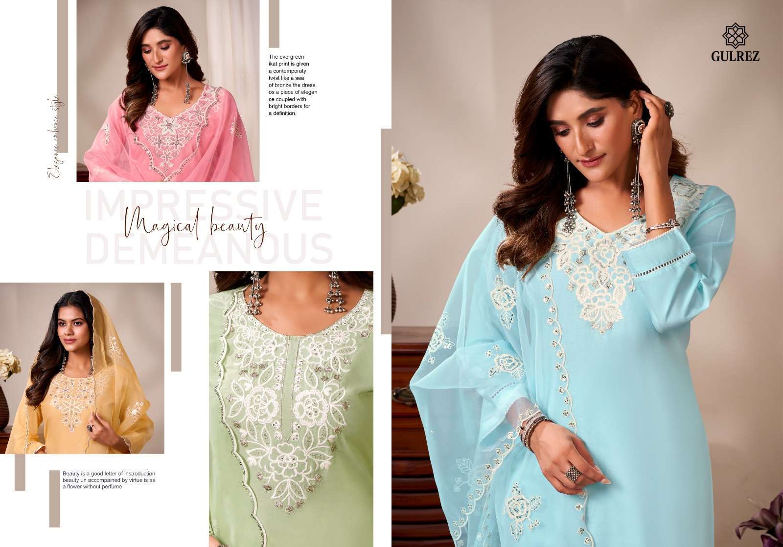 | Dupatta: | 100% pure organza embroidery work and scalloping* |