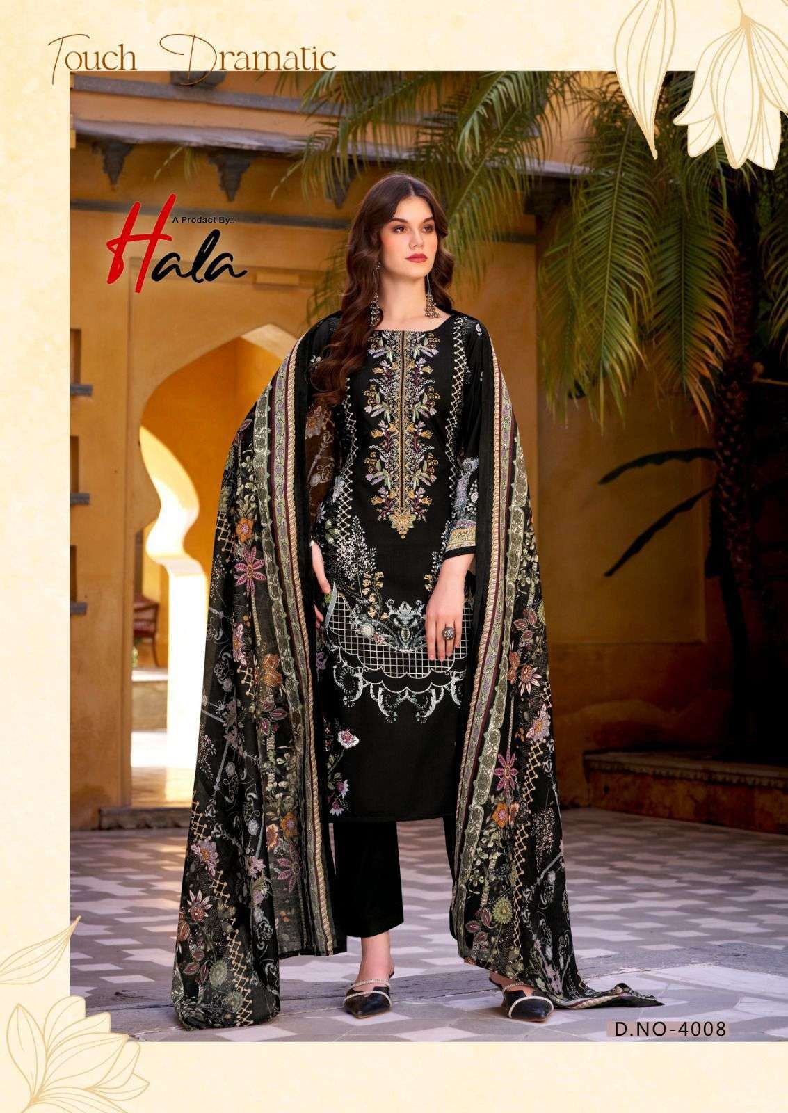 | Top: | premium soft cotton digital style print with *heavy embroidery work*. (2.50 mtrs) |