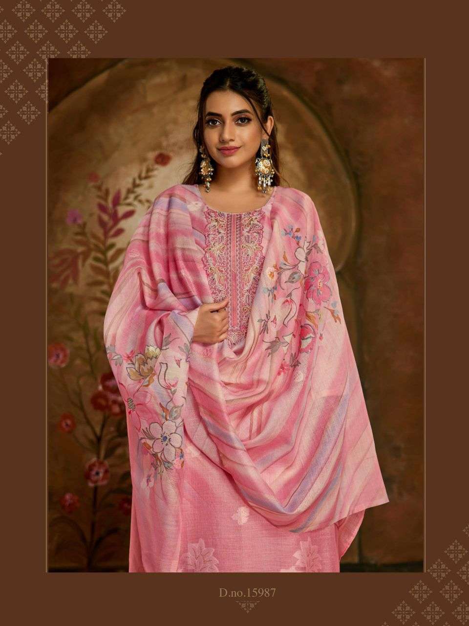 | Top: | pure lilen jaquard digital print with embroidery work & handwork* |