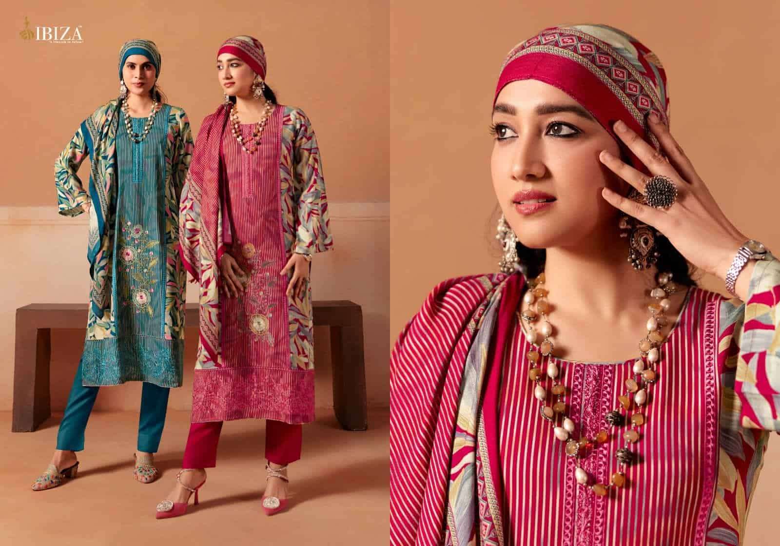 | Top: | pure viscose pashmina digital print with designer embroidery work |