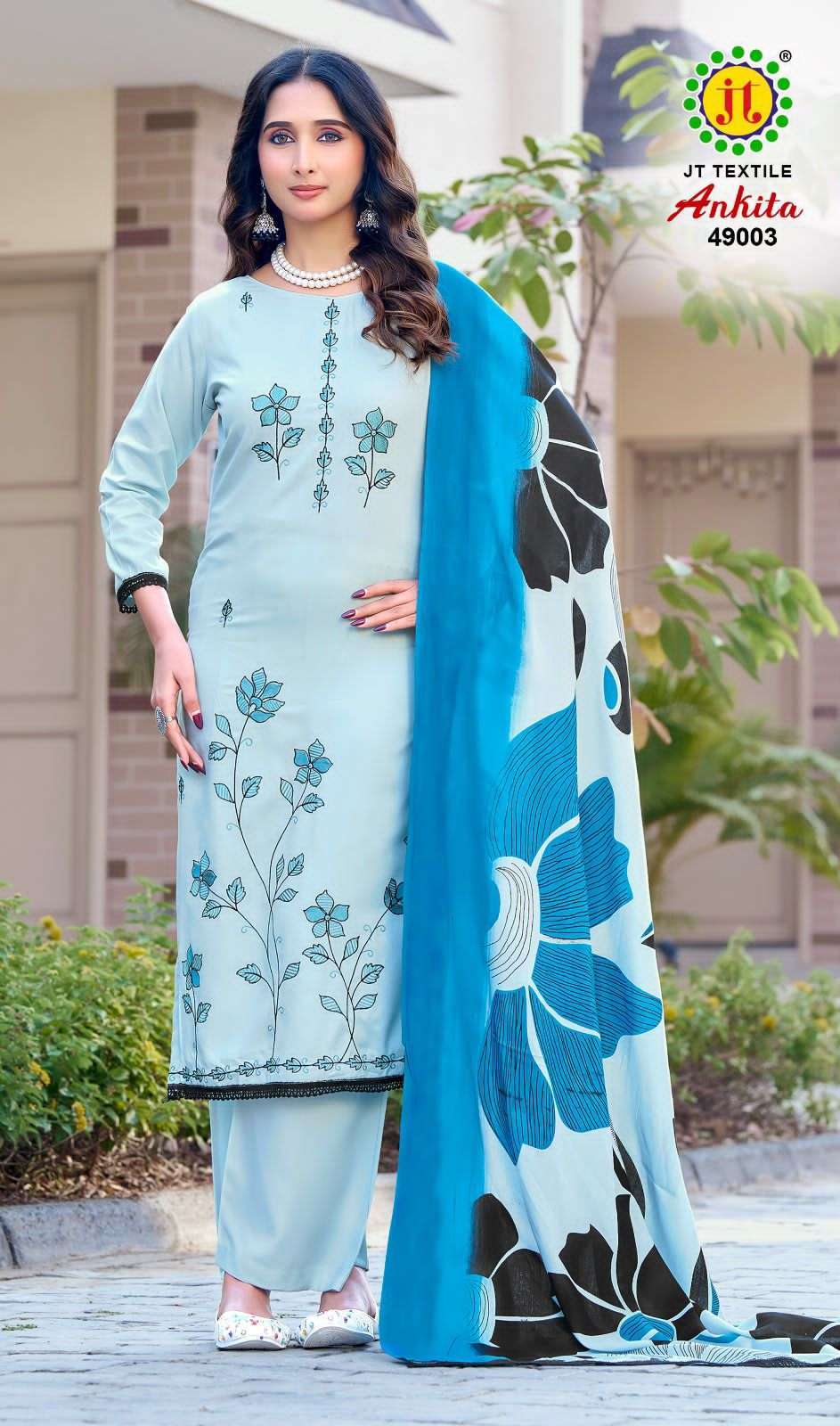 | Top: | rayon printed with embroidery work and lace(2.50mtr) |