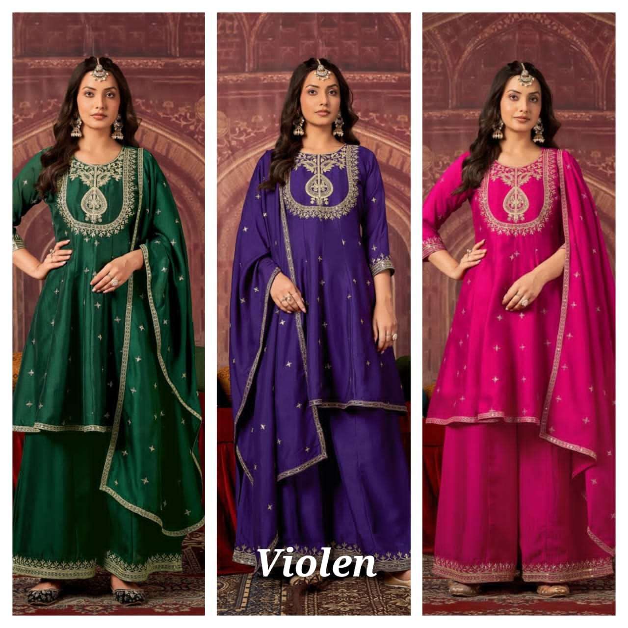 | Top: | heavy vichitra blooming embroidery work with inner |