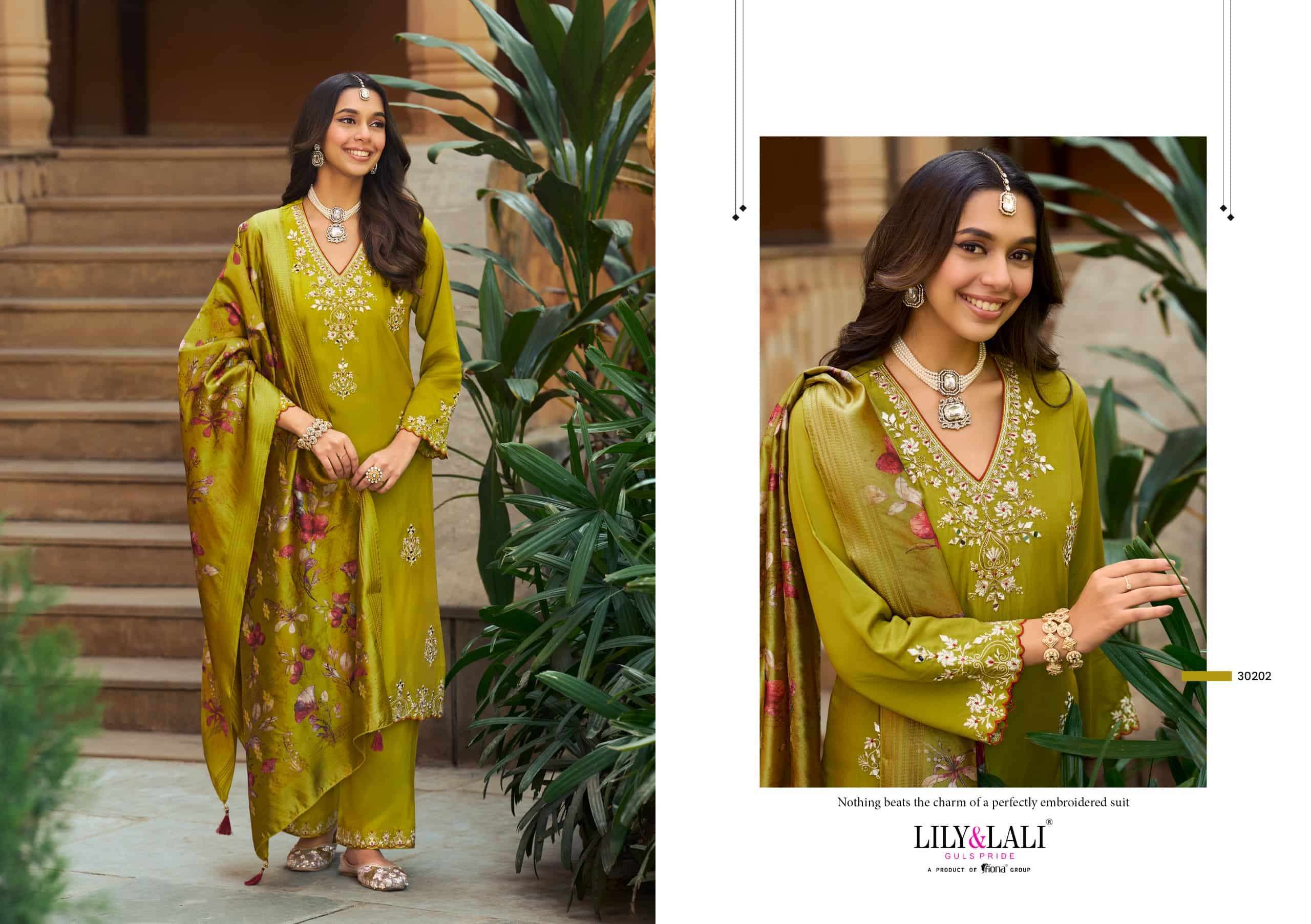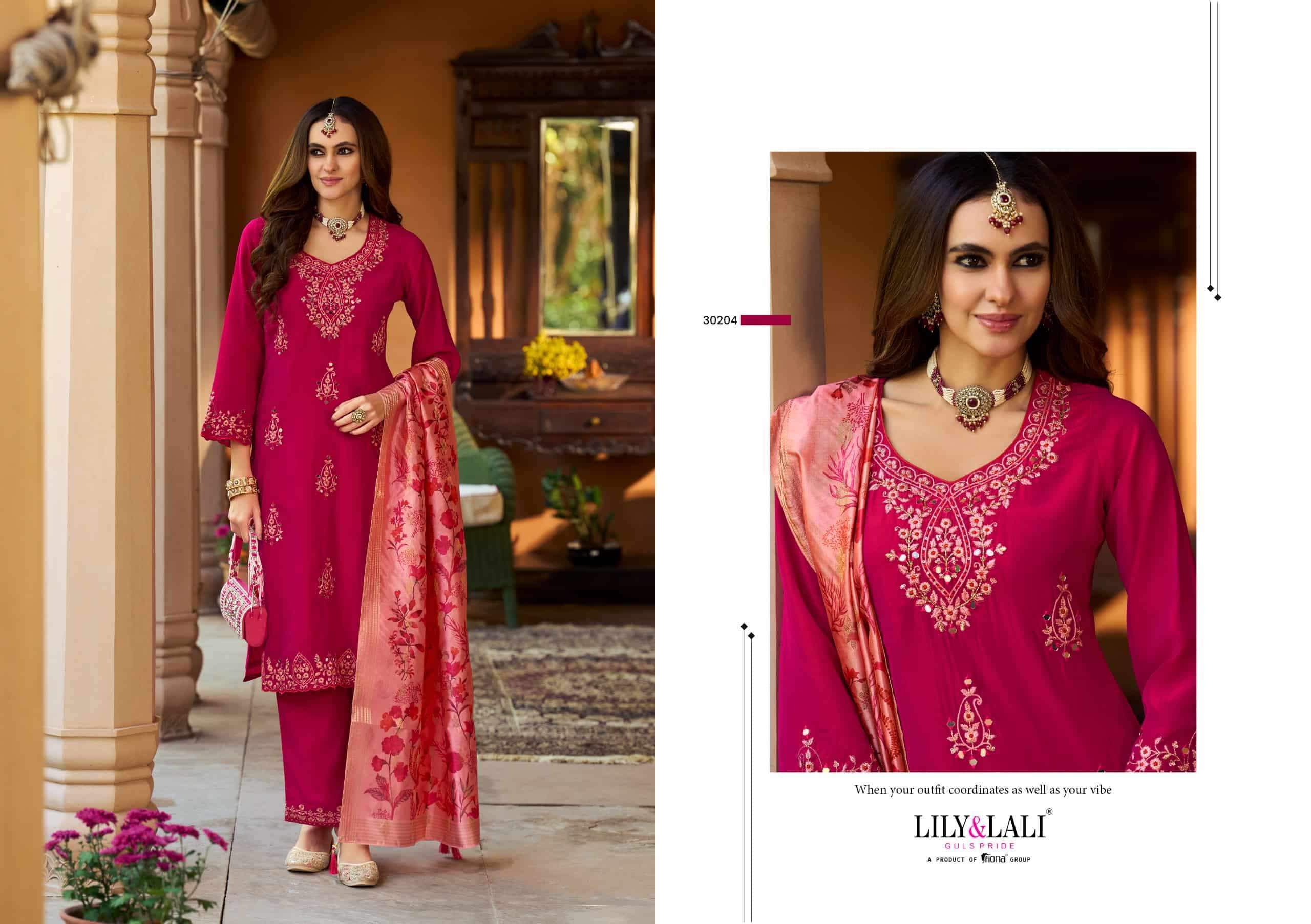 | Bottom: | viscose silk palazzo with embroidery |