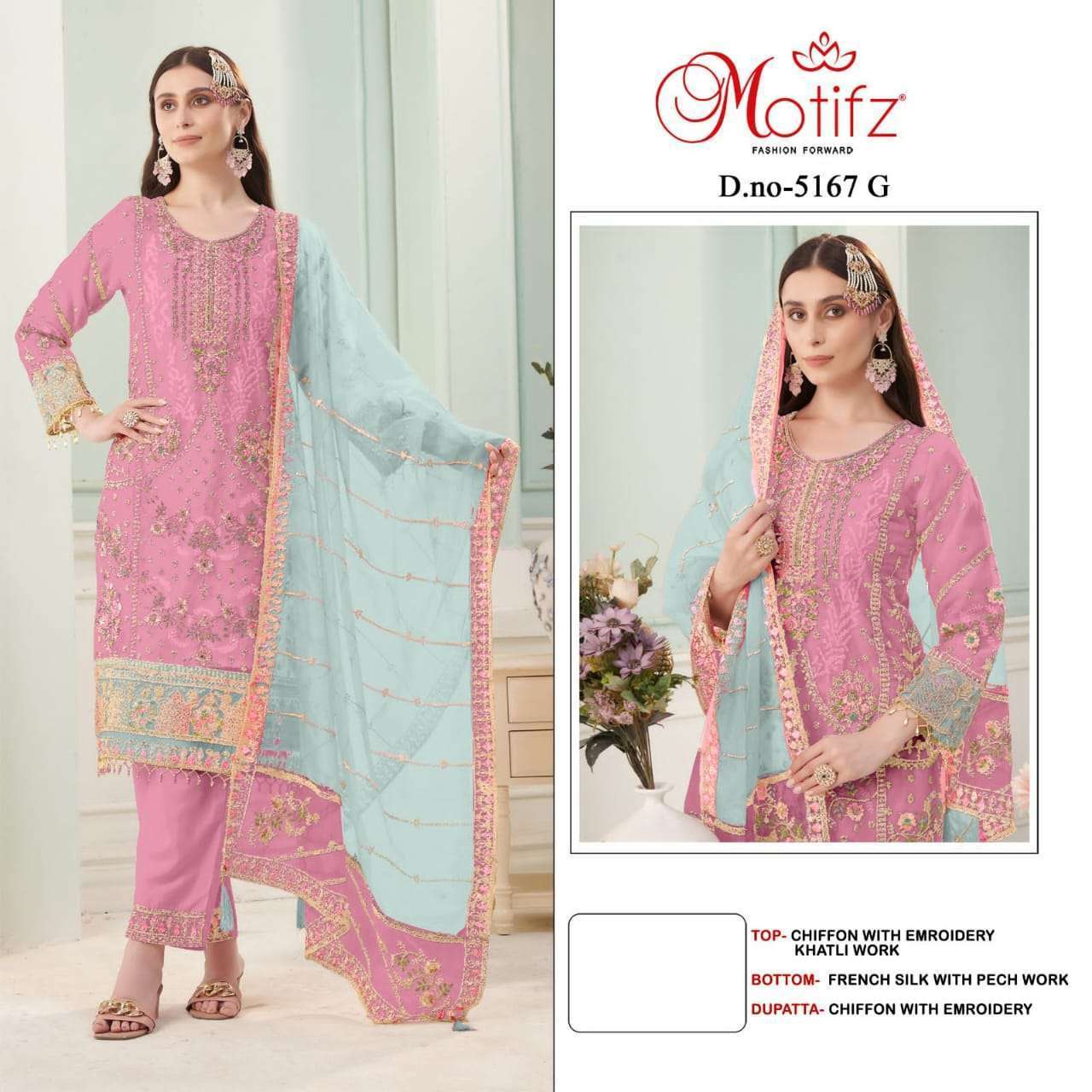 | Dupatta: | chiffon with embroidery |