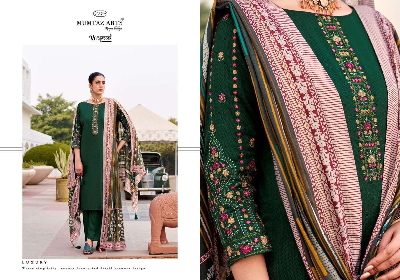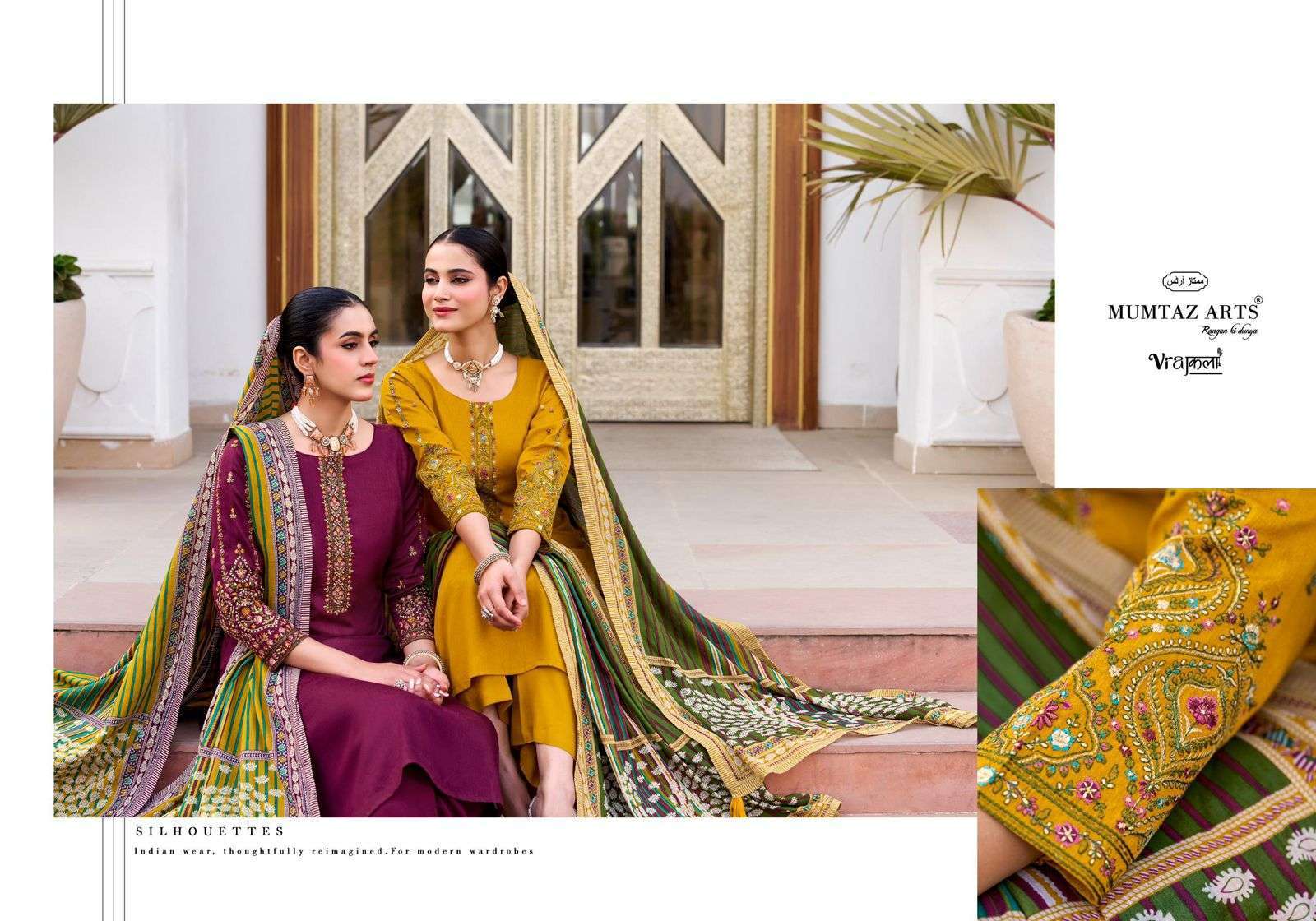 | Top: | viscose jam digital print with heavy exclusive embroidery neck & sleeves* |
