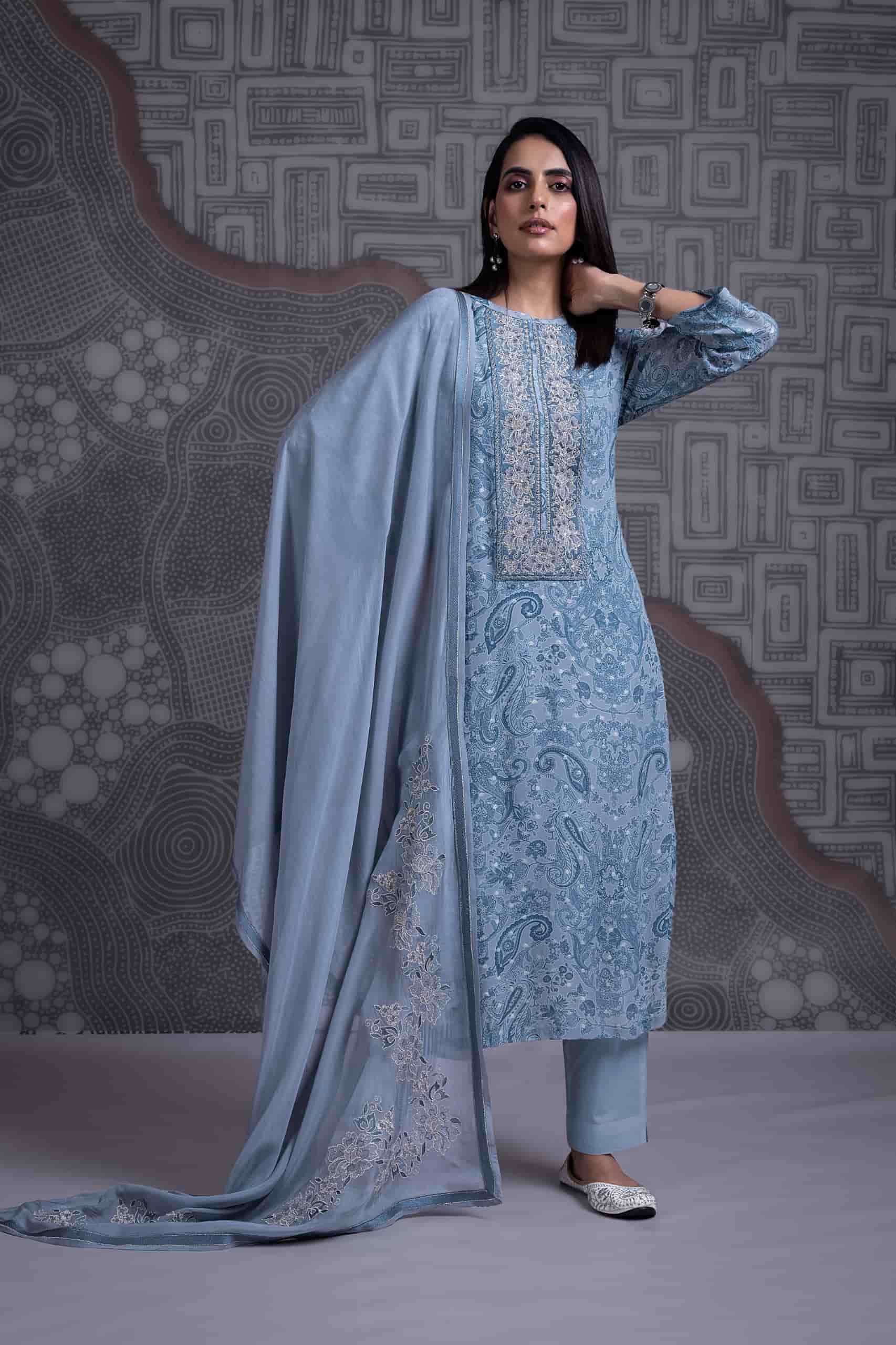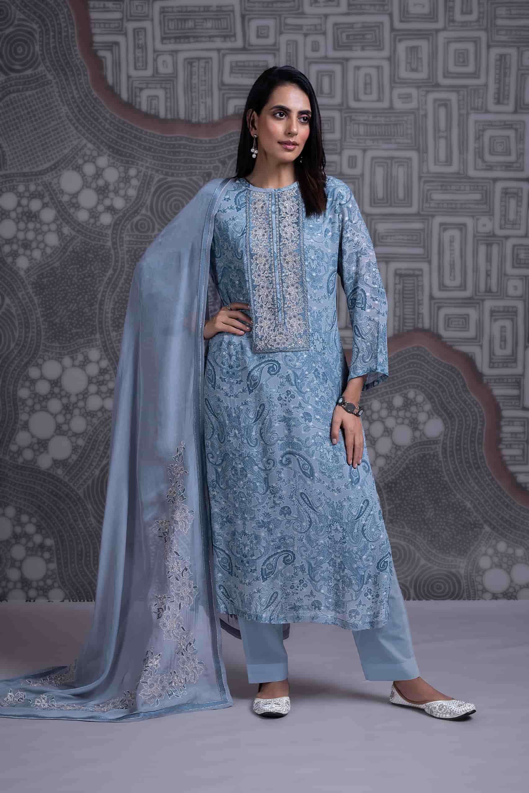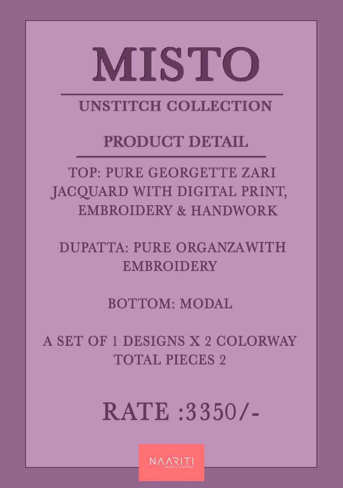 | Top: | pure georgette zari jacquard with digital print embroidery and handwork |