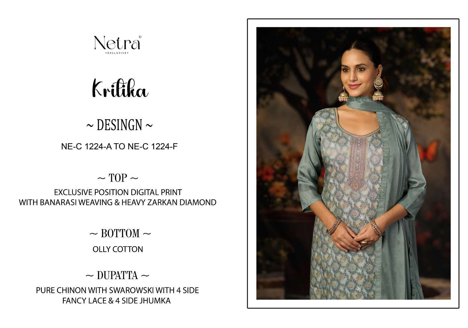 | Dupatta: | pure chinon with swarovski with 4 side fancy border & jhumka |