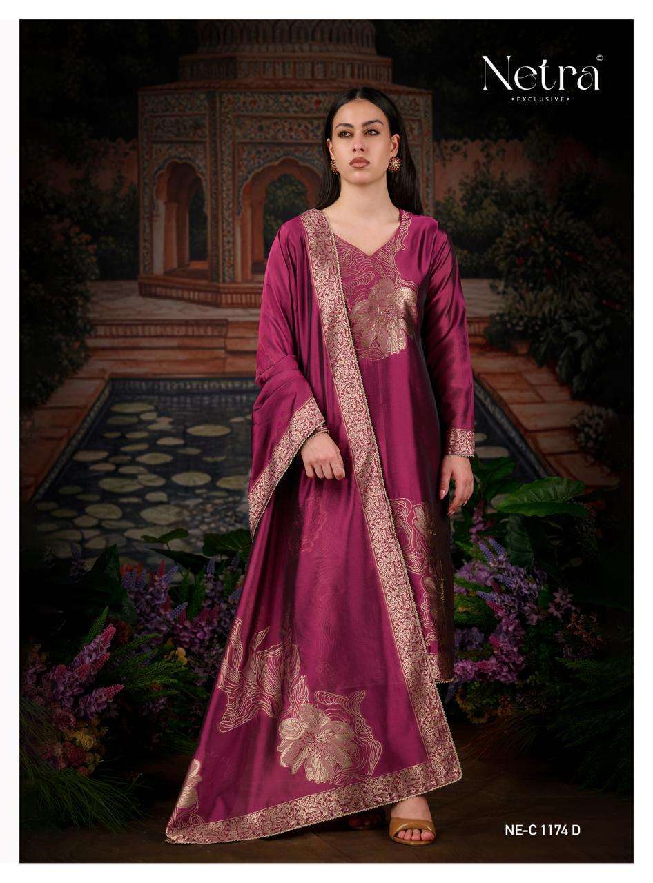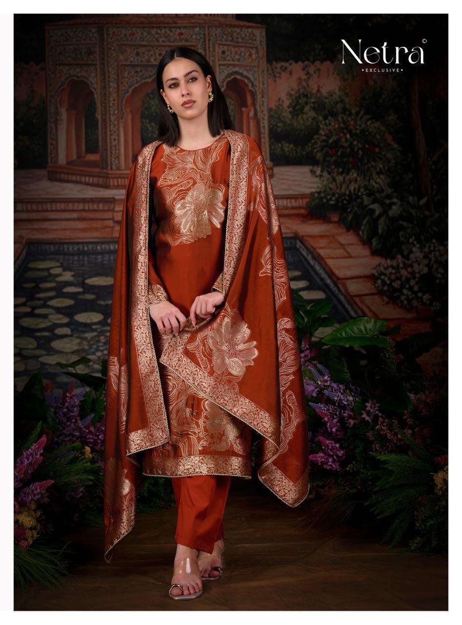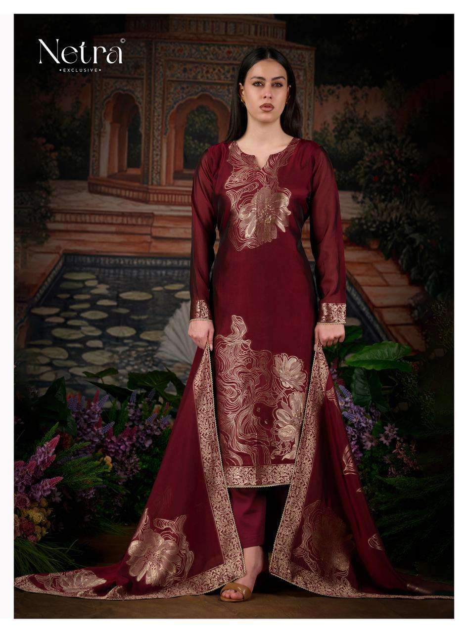 | Dupatta: | premium pure viscose woven silk jacquard with jari lace border |