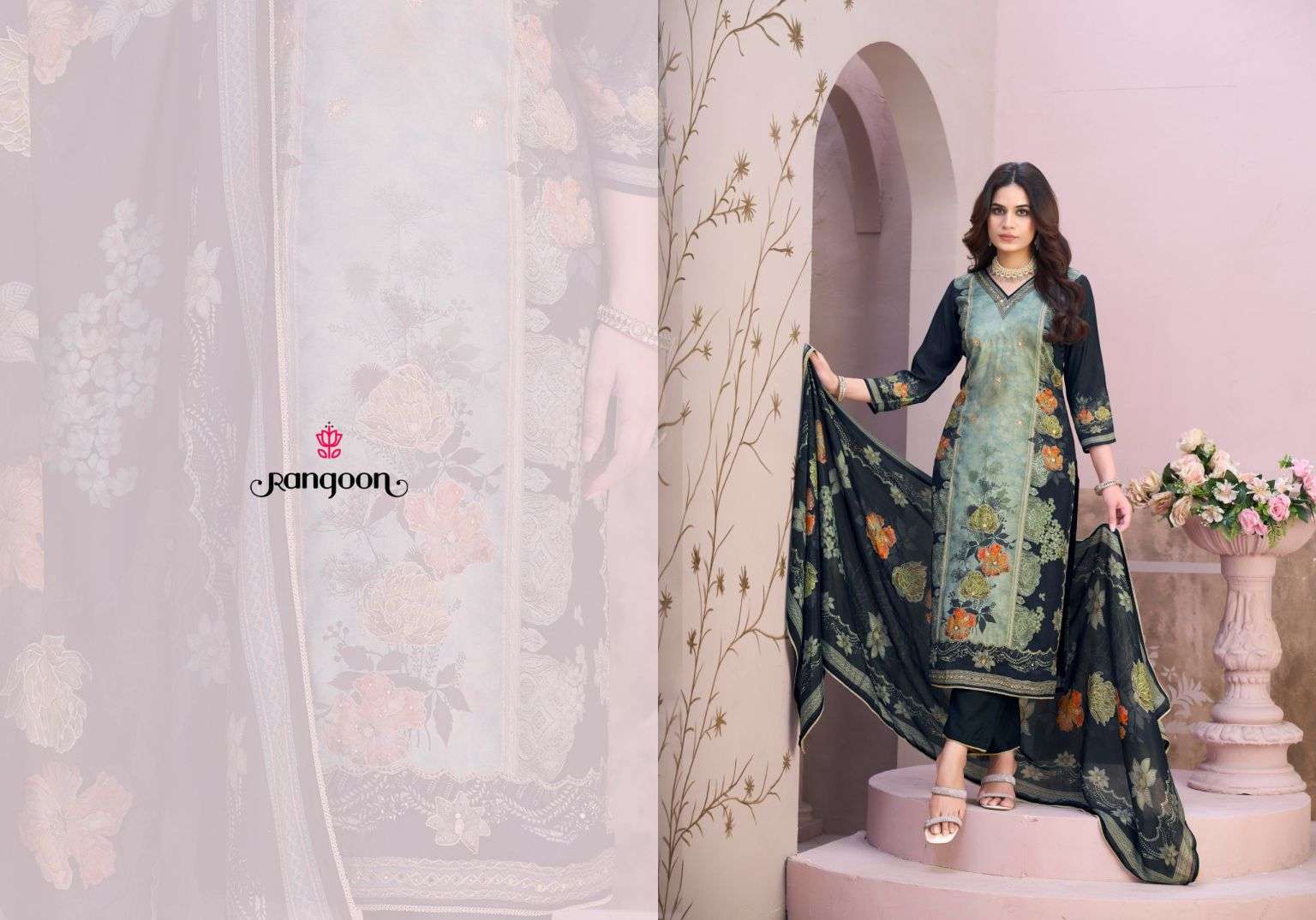| Dupatta: | pure muslin with pure digital print & fourside lace border |
