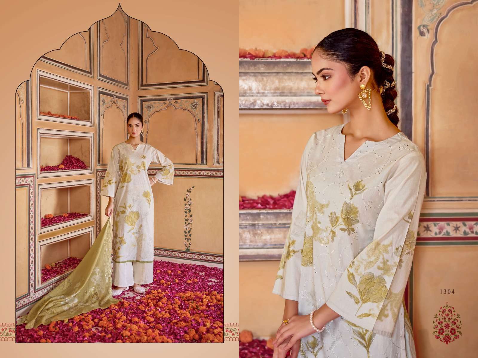 | Dupatta: | pure cotton mull embroidery work with digital print |