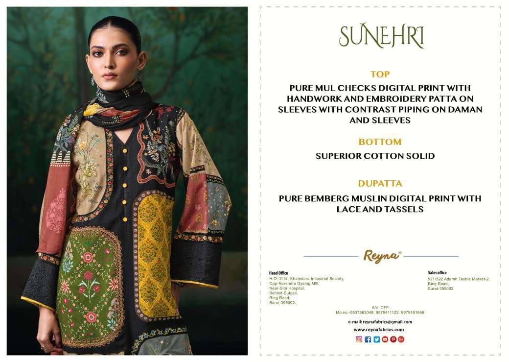 | Top: | pure mul checks digital print with handwork and embroidery patta on sleeves with contrast piping on daman and sleeves |