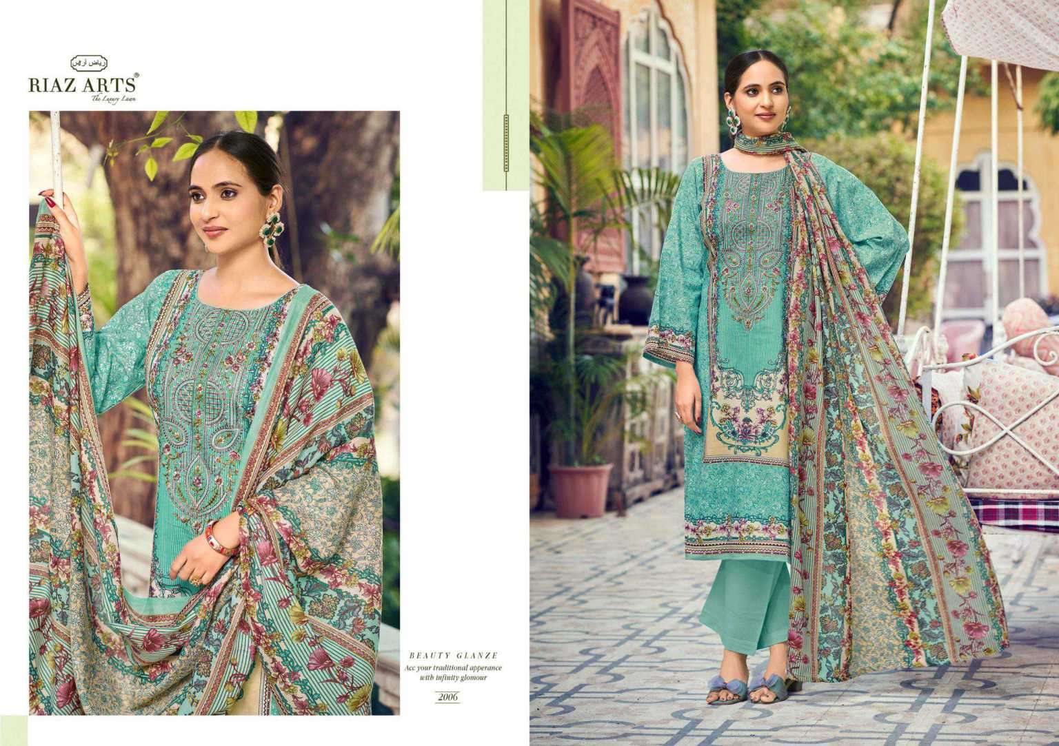 | Top: | cotton camric lawn print with heavy embroidered work* |