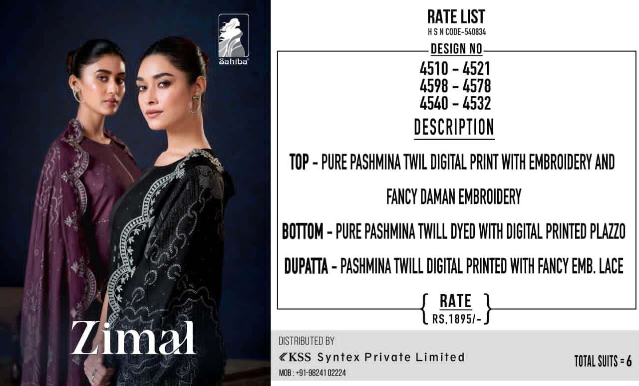 | Top: | pure pashmina twill digital print with embroidery and fancy daman embroidery |