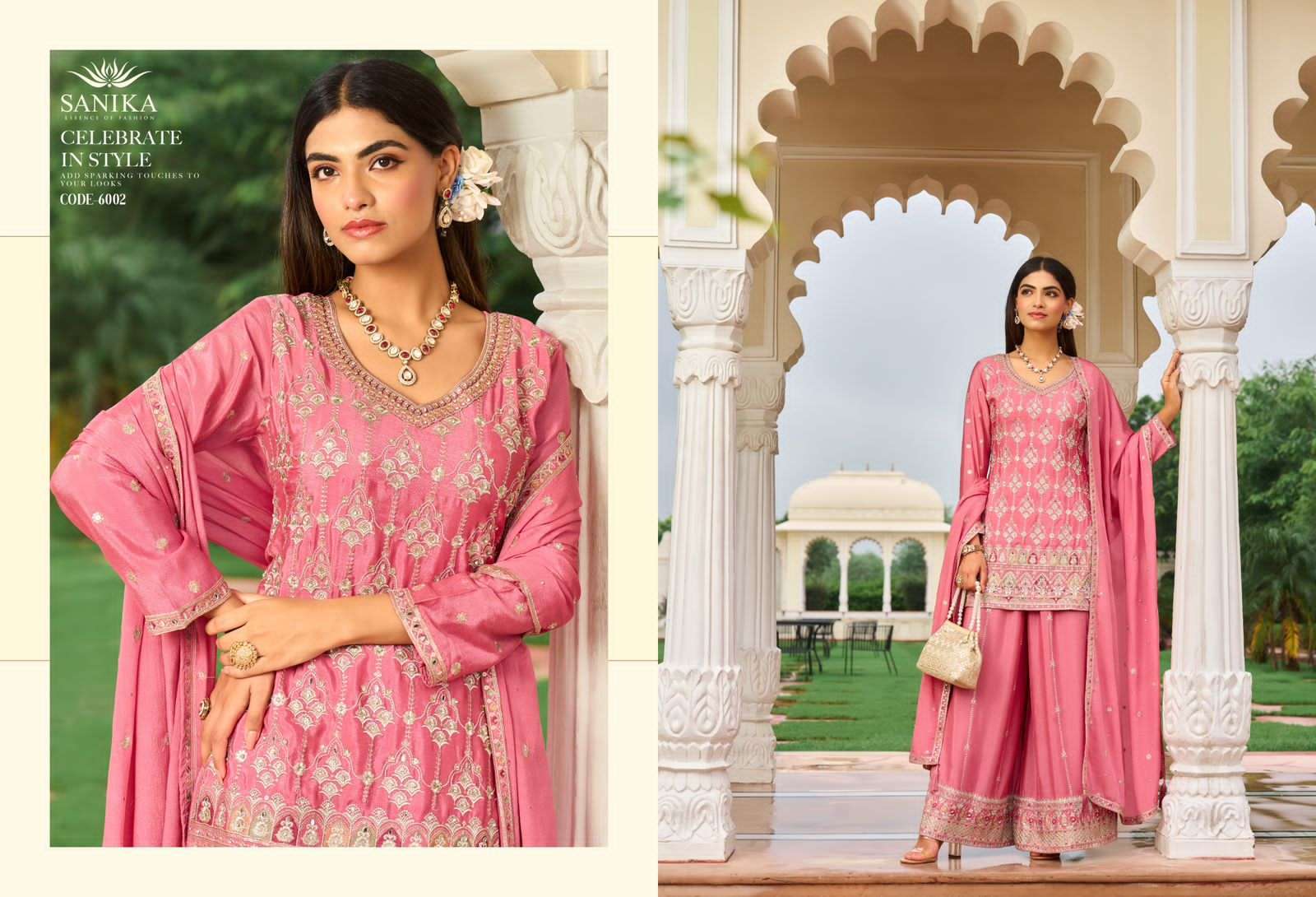 | Bottom: | premium chinon designer palazzo with heavy embroidery and handwork |