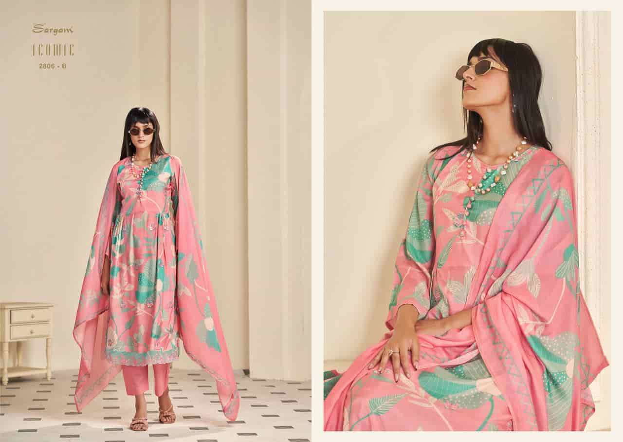 | Top: | pure muslin digital prints with embroidery seqwance buttty & scalloped floral embroidered border |