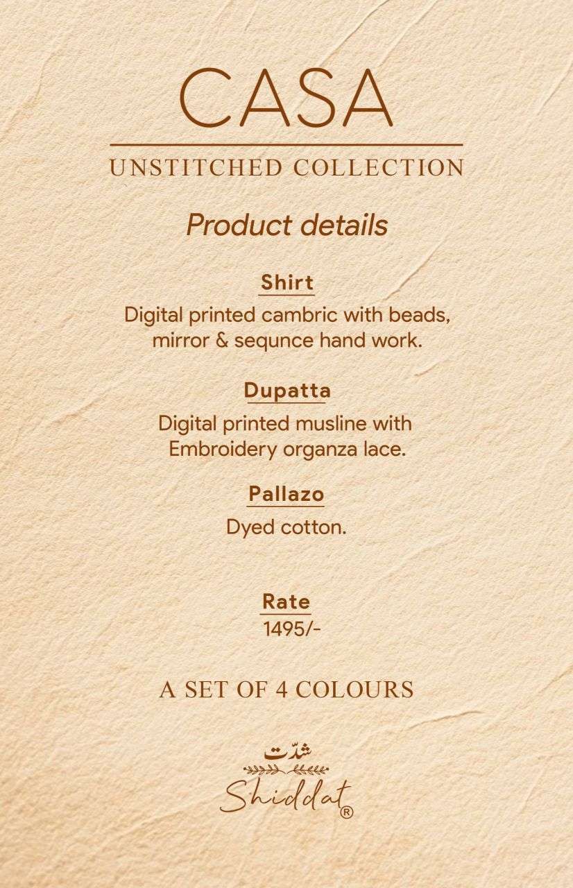 | Dupatta: | digital printed musline with embroidery organza lace. |
