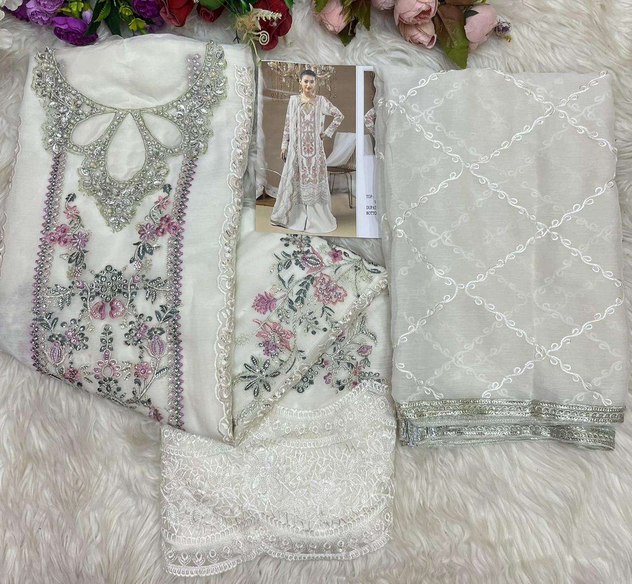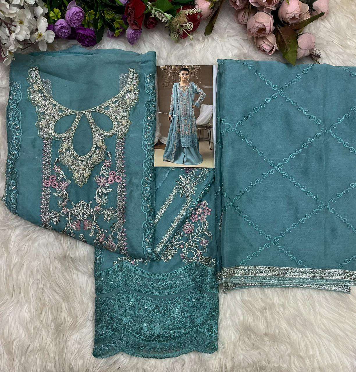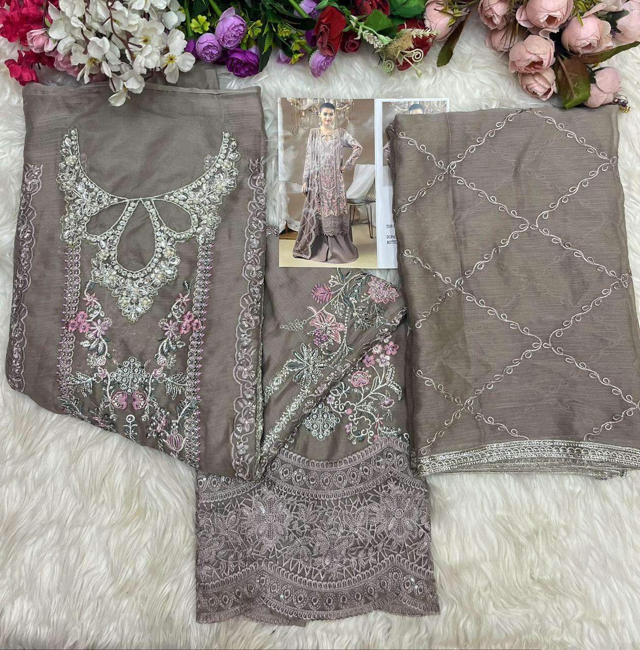 | Top: | chiffon heavy with heavy embroidery with *hand khatli &* |