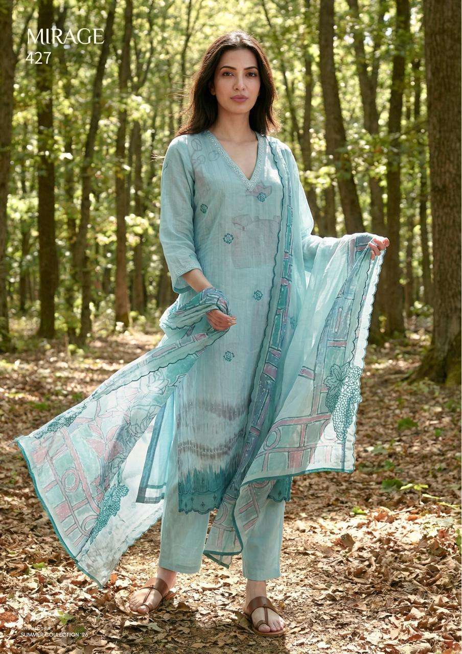 | Top: | organdy digital print with hand work and embroidery in daman & neck |