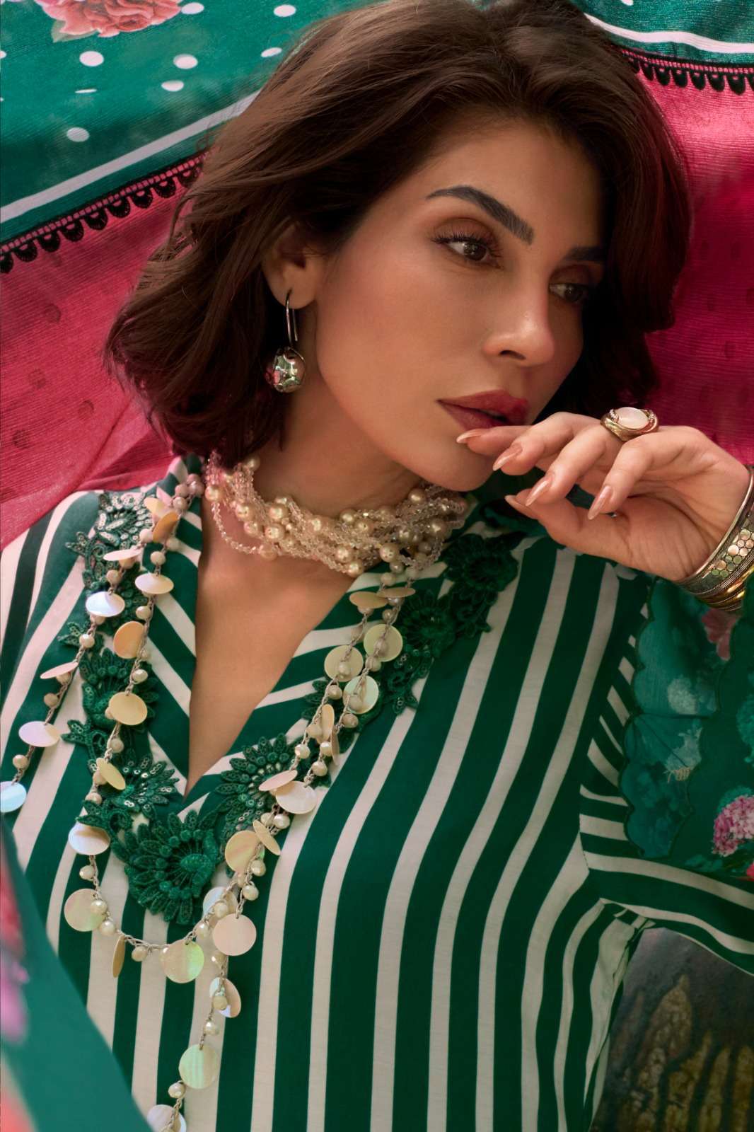 | Top: | viscose muslin digital print with mirror handworkma |