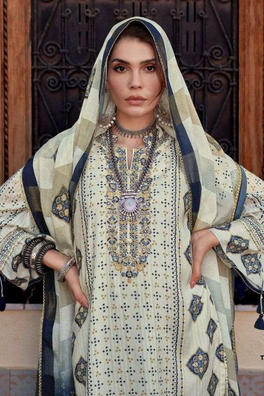 | Top: | viscose muslin digital printed with thread embroidery |