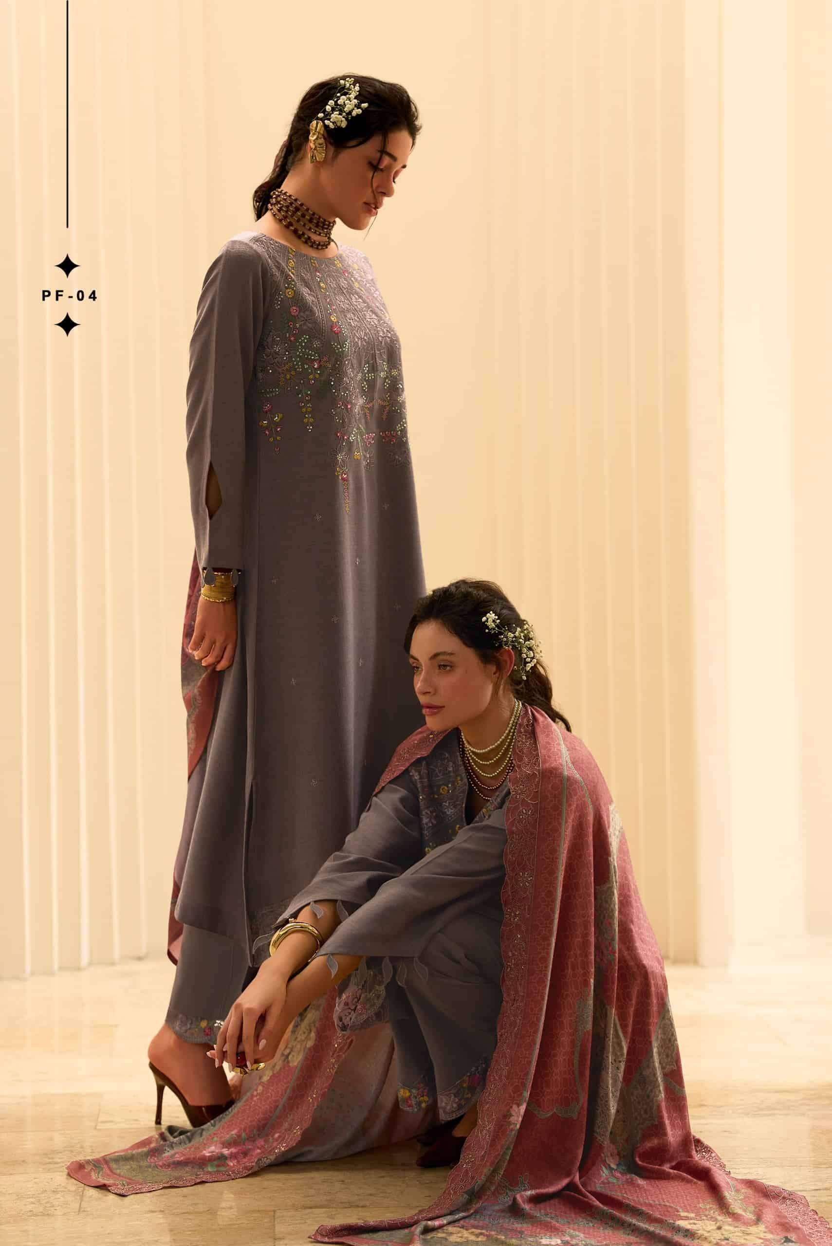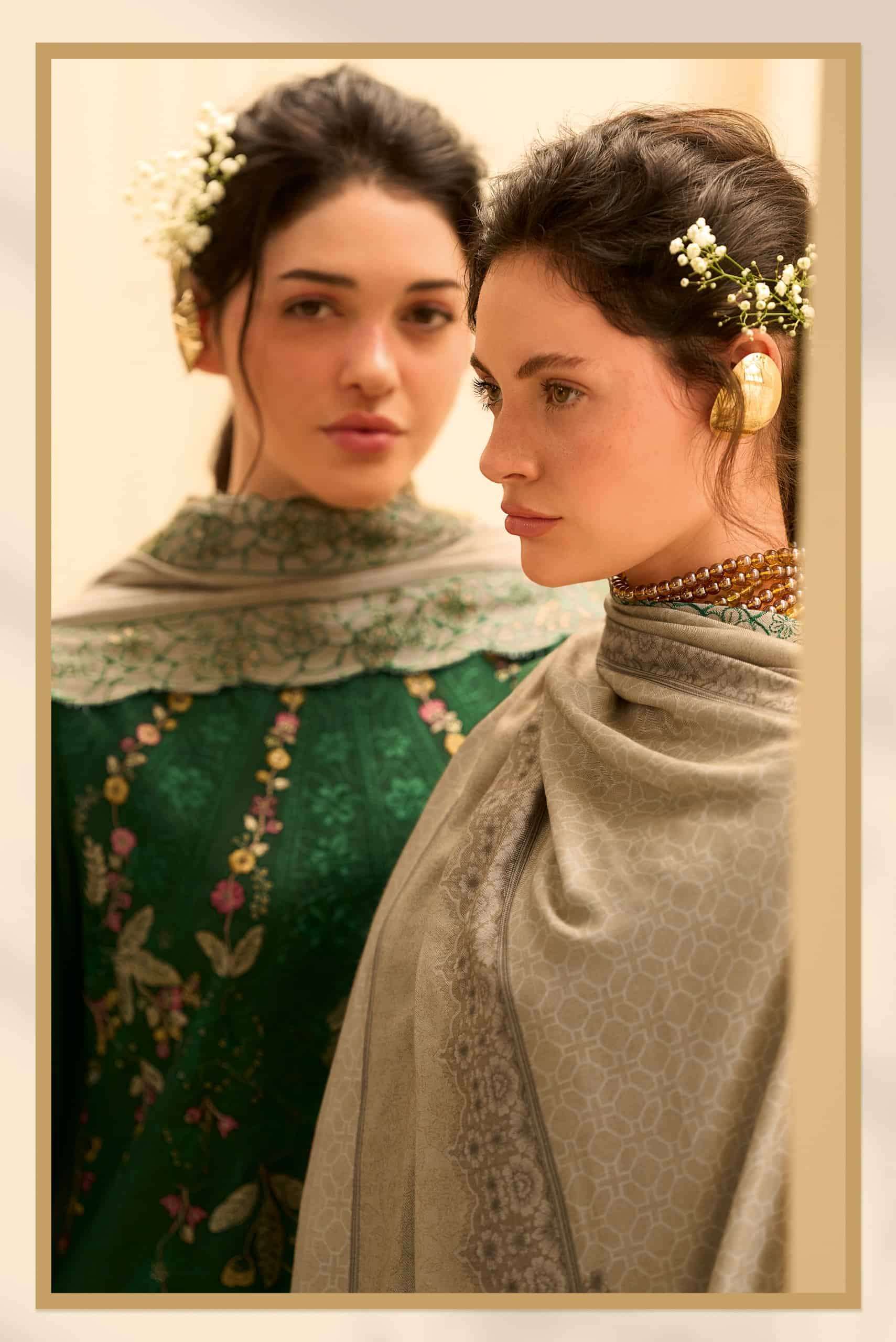 | Dupatta: | viscose pashmina digitally printed with embroidery |