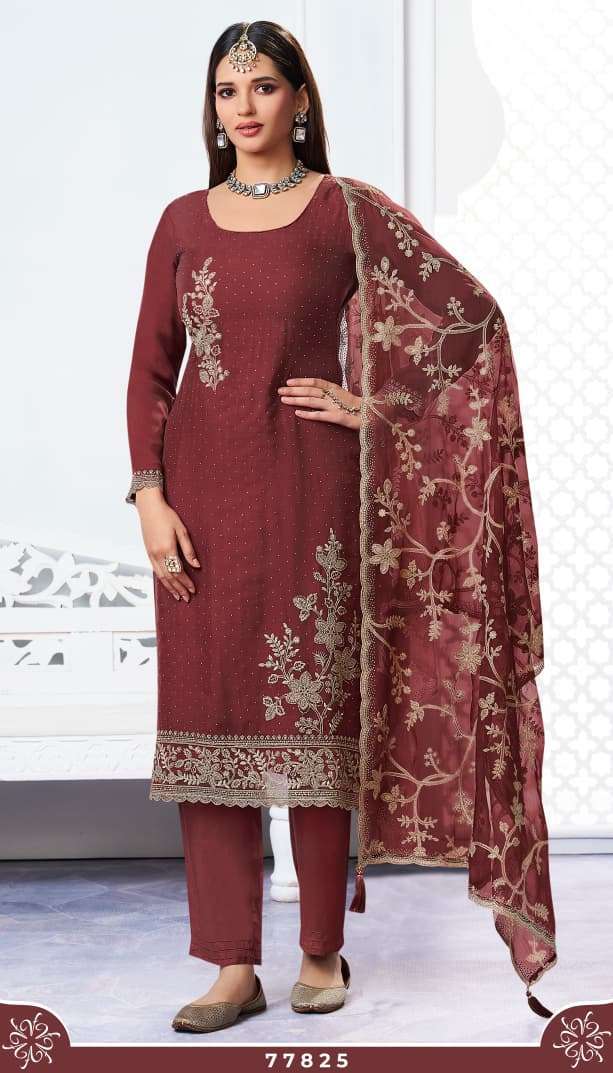 | Top: | organza chiffon top and dupatta beautifully adorned with intricate thread embroidery and sparkling zarkan work paired with a soft santton fabric bottom |