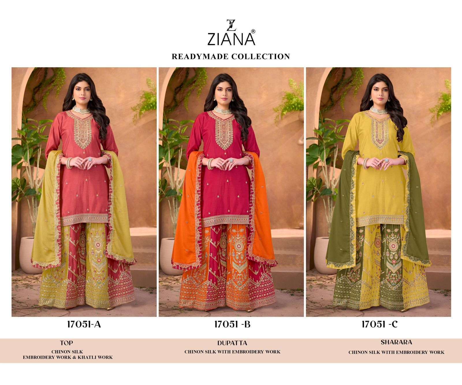 | Bottom: | chinon silk with embroidery work |