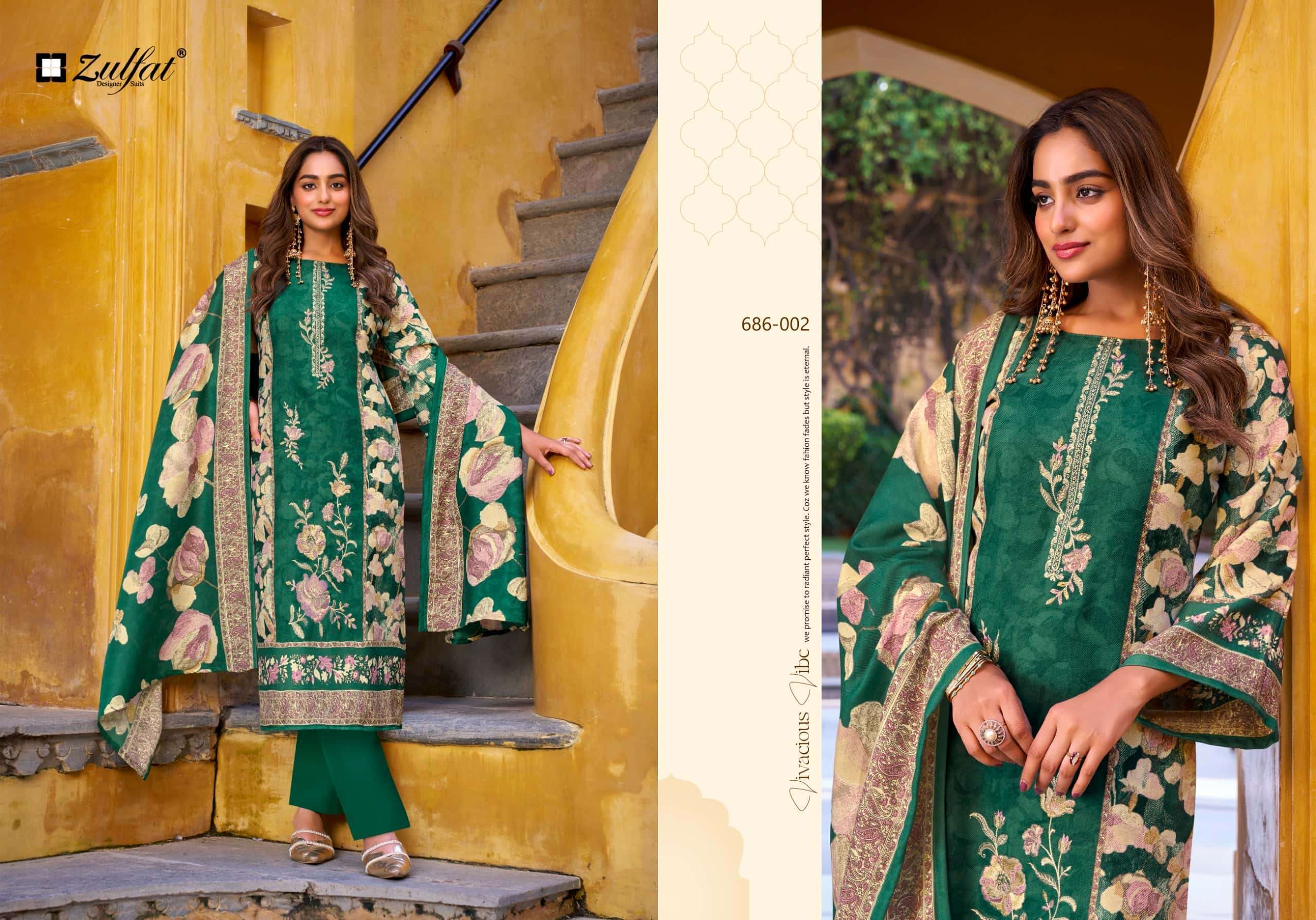 | Top: | 100% pure woolen pashmina with full front heavy embroidery work(2.50mtr apx) |